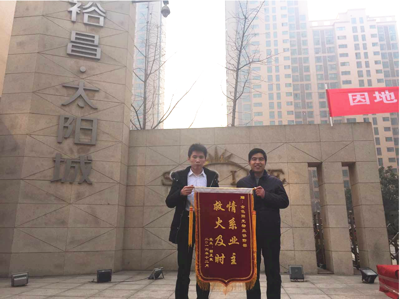 12月18日,2-2-2102的業(yè)主送來(lái)了一面“救火及時(shí) 情系業(yè)主”的錦旗和四份感謝信,隨后應(yīng)業(yè)主要求,將感謝信貼在了小區(qū)各個(gè)主要出入口。