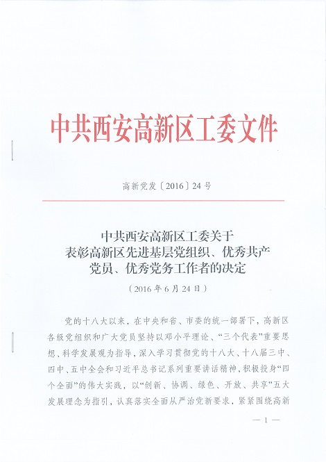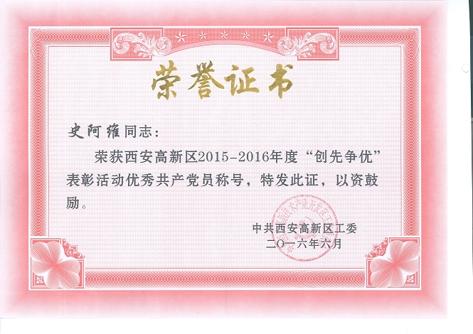 熱烈祝賀西安裕昌黨支部史阿維同志被評為2015-2016年度“創(chuàng)先爭優(yōu)”活動優(yōu)秀共產黨員稱號