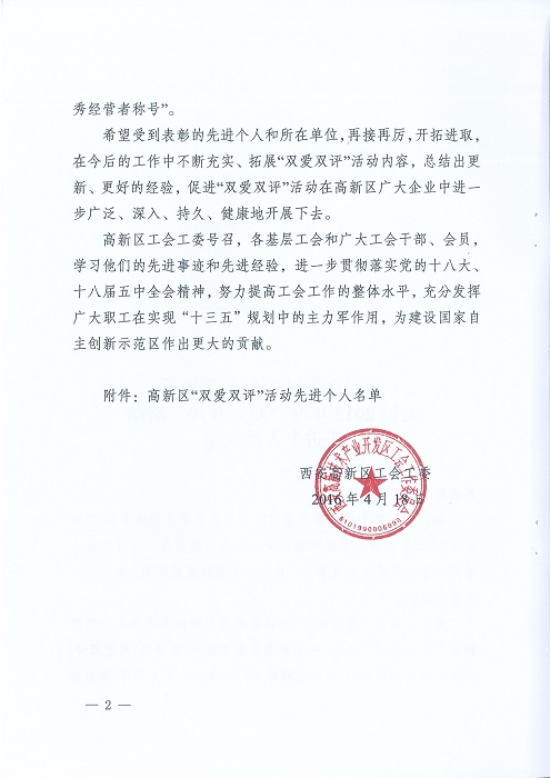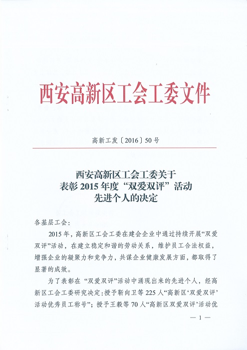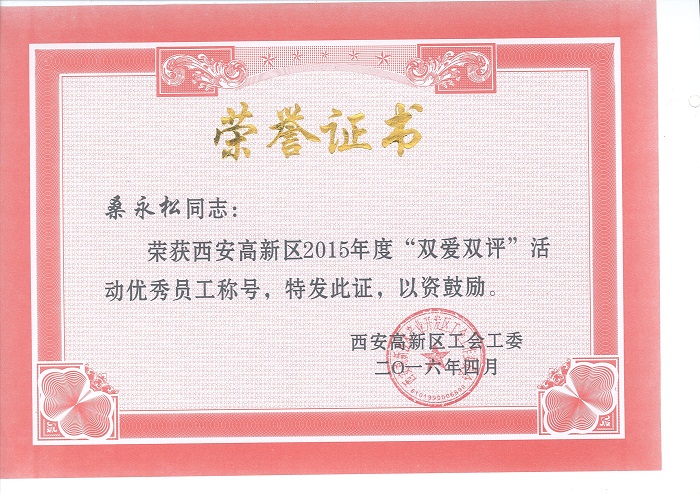 熱烈祝賀西安裕昌桑永松同志、西安物業(yè)徐進(jìn)勝同志被評(píng)為2015年度“雙愛雙評(píng)”先進(jìn)個(gè)人
