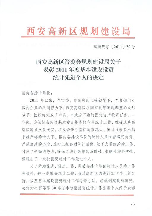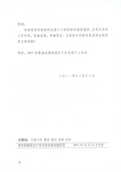 熱烈祝賀我公司雷澍同志被評為2011年基本建設統(tǒng)計工作先進個人