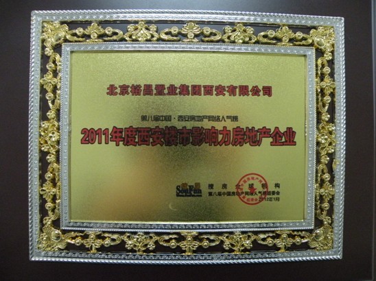 西安公司榮獲“2011年度西安樓市影響力房地產(chǎn)企業(yè)”