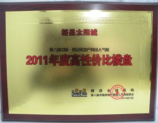 裕昌·太陽(yáng)城項(xiàng)目榮獲“2011年度高性價(jià)比樓盤(pán)”