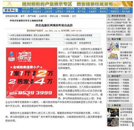 2007年10月28日,我公司經(jīng)過23輪激烈競(jìng)拍,以4.29億獲得西安市高新區(qū)丈八東路地塊,這是我公司取得的第一塊外省市用地,同時(shí)也標(biāo)志著我公司走出北京走向全國戰(zhàn)略進(jìn)程邁出了第一步。該地塊具體情況如下: