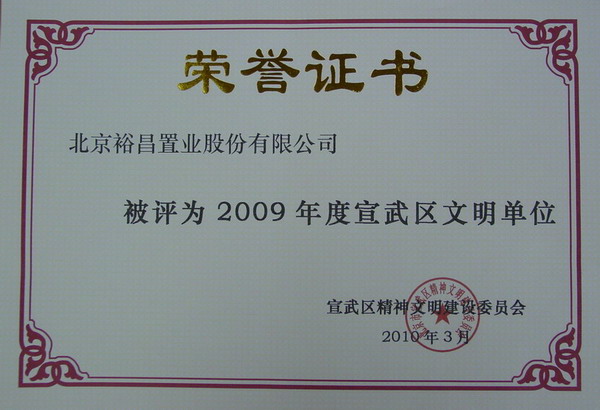 我公司被評為“2009年度宣武區(qū)文明單位”