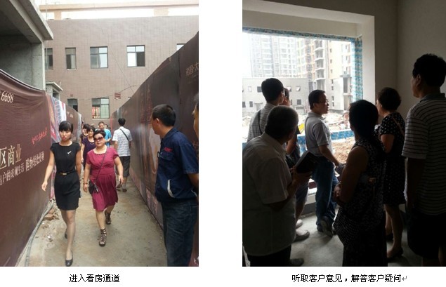 整個過程中,置業(yè)顧問、物業(yè)人員、工程人員全程陪同,耐心解答客戶疑問,聽取客戶意見并記錄。