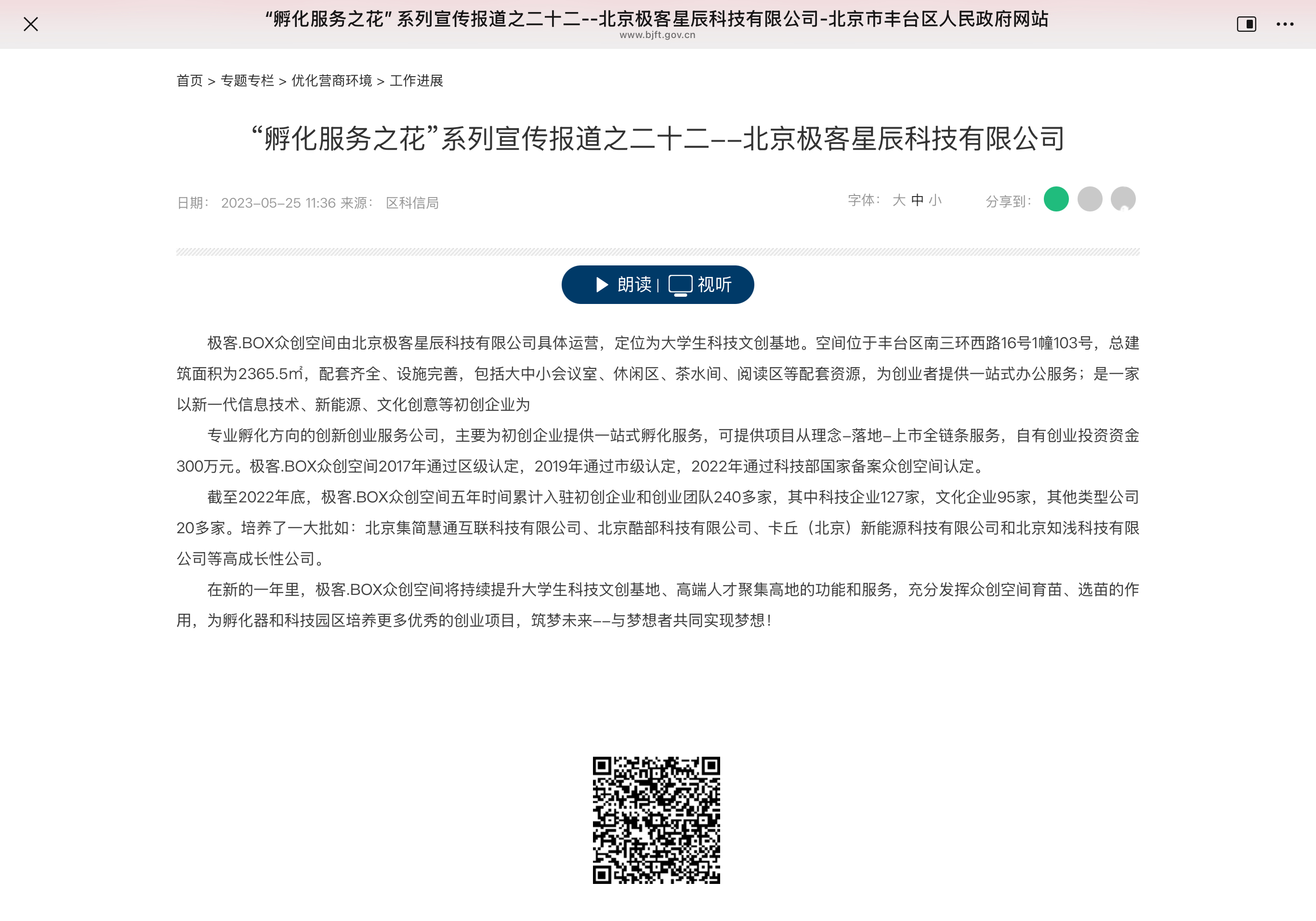 極客.BOX眾創(chuàng)空間獲北京市豐臺(tái)區(qū)政府專題報(bào)道